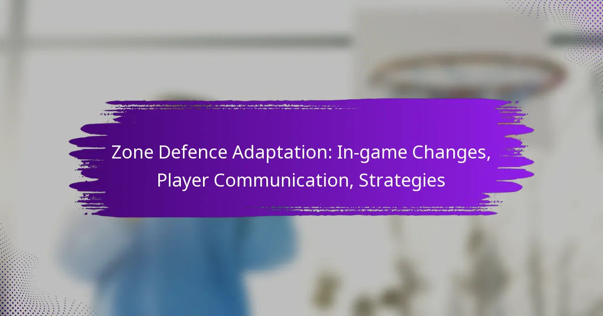 Zone defence is a strategic approach in basketball and football that emphasises area coverage over individual marking, requiring strong teamwork and communication. In-game adaptations are essential, as teams must adjust their defensive strategies based on the opponent’s tactics and player performance. Effective communication, including verbal cues and defined roles, enhances the team’s ability to respond dynamically to changing game conditions.